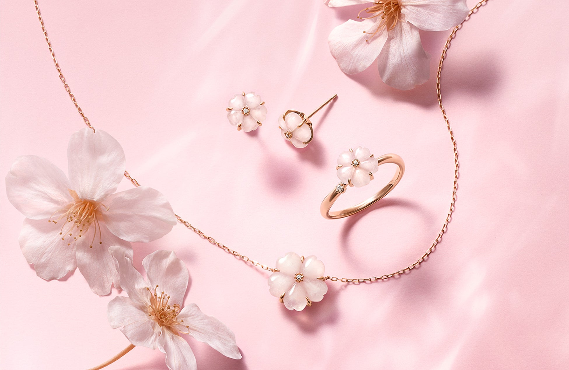 春の装いをさらに愛らしく、そして軽やかに彩る桜色のジュエリーを、あなたらしく可憐にまとって。