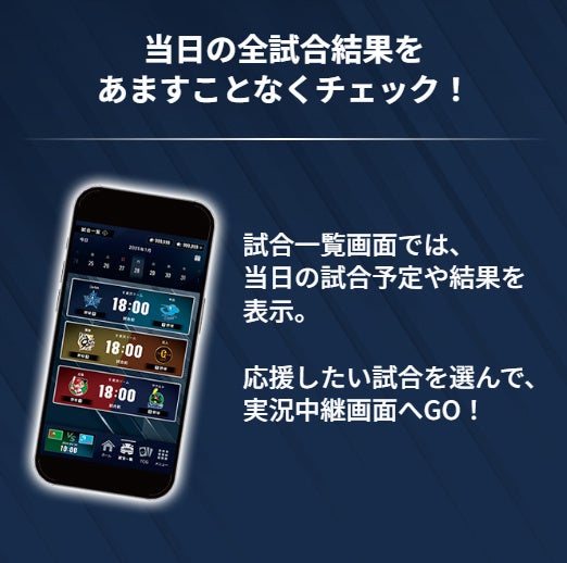 アプリでは、プロ野球の試合速報と連動した応援モードを搭載し、“試合速報連動型”アプリとして展開。ファミスタ風の映像で試合速報がリアルタイムで観戦できる機能に加え、全試合をAIボイスによる音声実況付きで無料配信し、各チームを応援したプレイヤーのスコアをランキング形式で表示。選手データや成績など膨大なデータベースにもアクセスでき、野球ファンなら誰もが熱くなれる要素が詰まっている。
