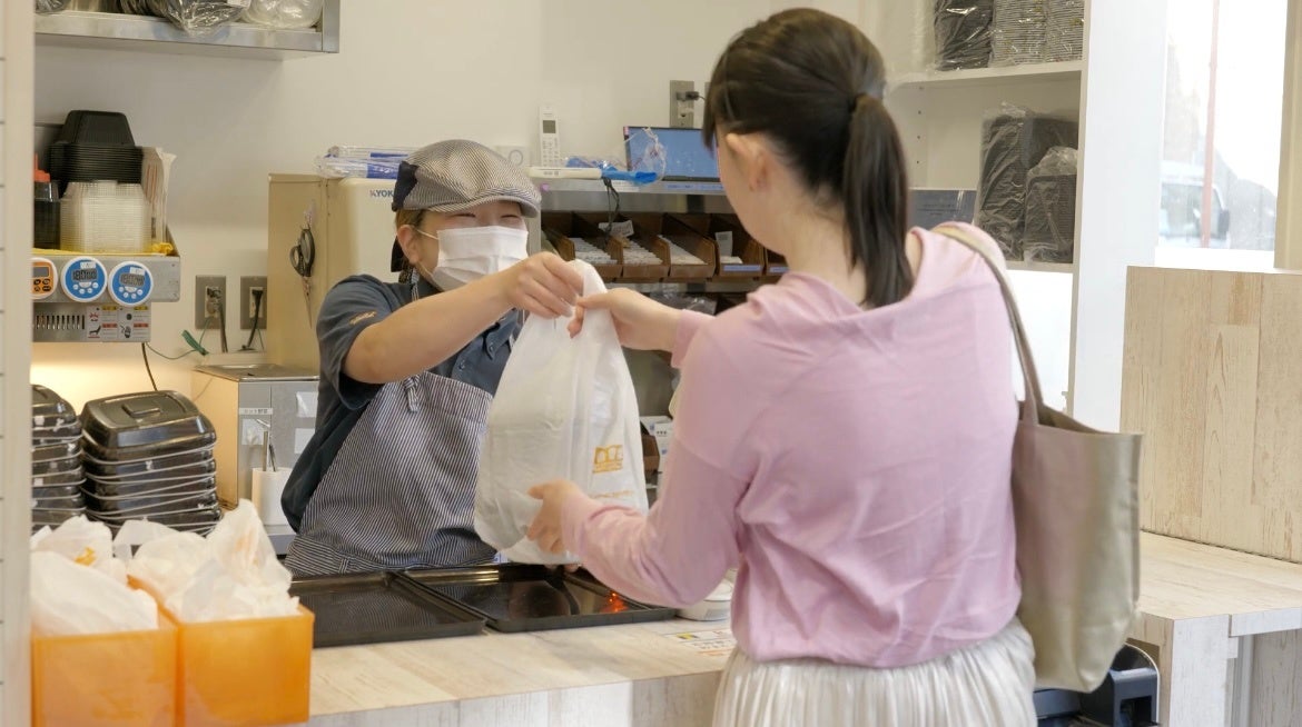【「テイクアウト・デリバリー専門店」にてタブレットで注文して、商品を受け取る様子】