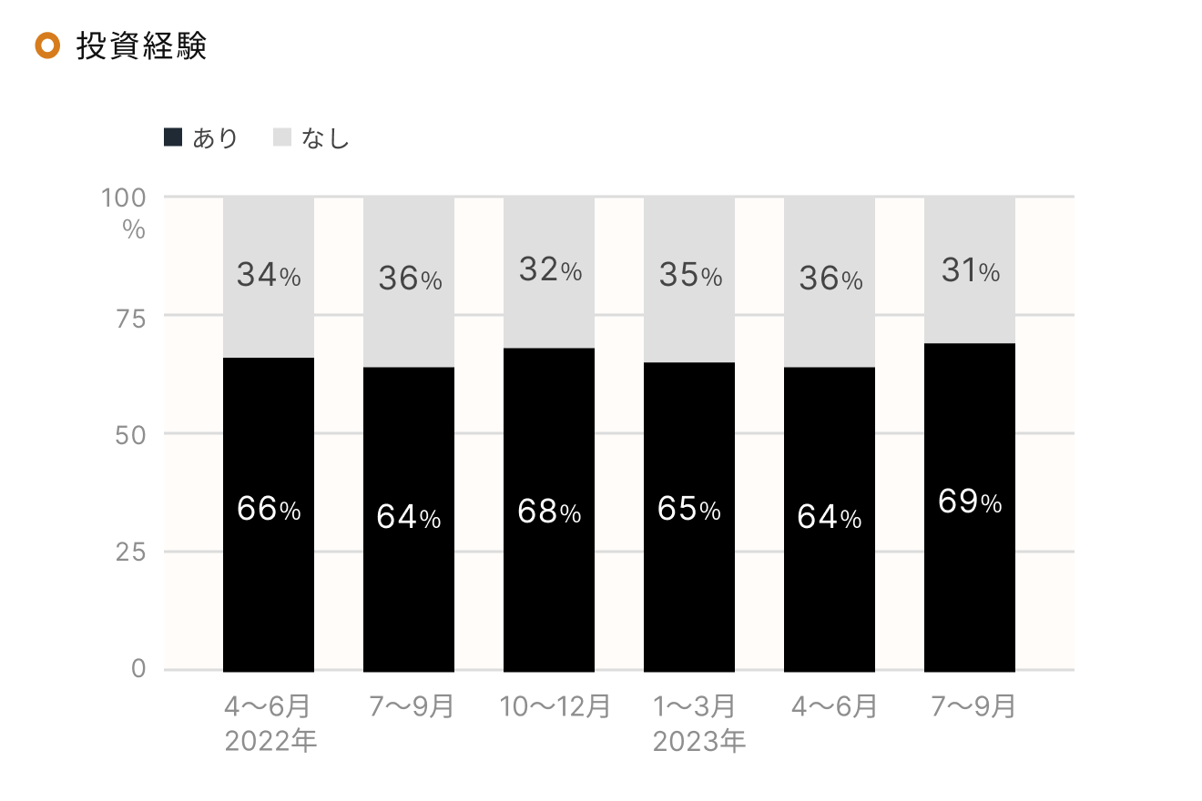 2023年7〜9⽉度における成約顧客の投資経験は、成約時点で69%が「投資経験あり」となりました。