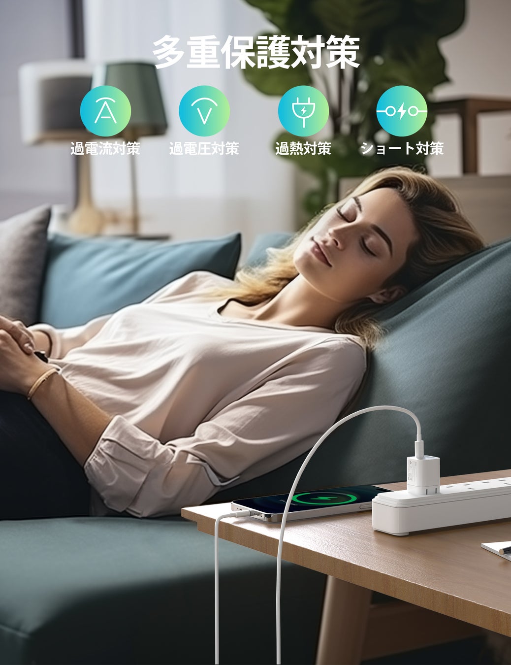 ■最大20Wの出力でiPhone 最新シリーズを急速充電でき、5W充電器と比べて最大3倍の速さで充電が可能です。