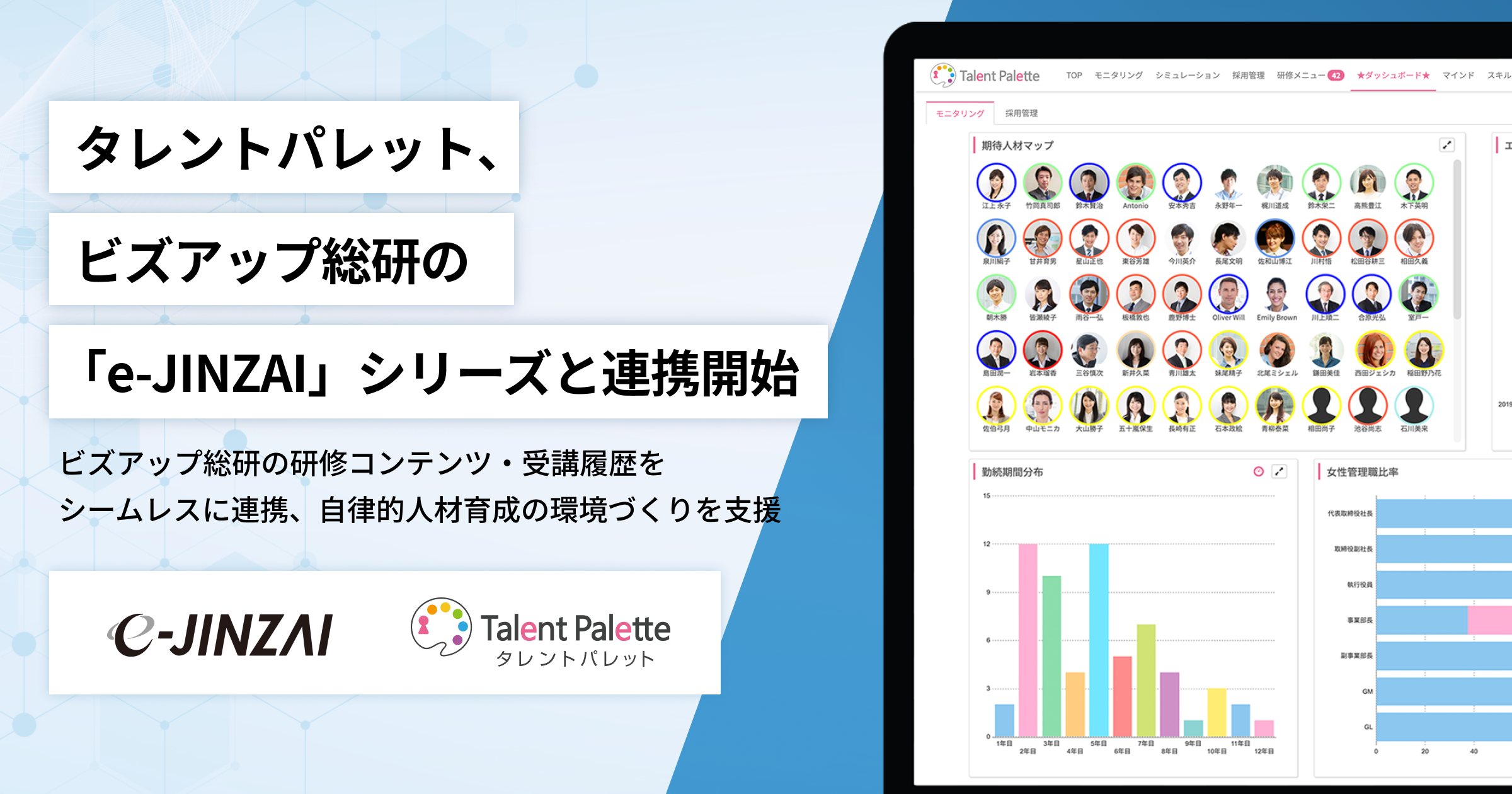 タレントパレット、ビズアップ総研の「e-JINZAI」シリーズと連携開始