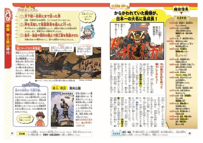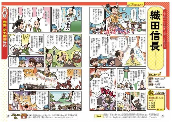 「るるぶ」ならではの編集ノウハウを活かした、わかりやすいイラストや図解を使い、「宇宙の誕生や太陽系の惑星」、「日本史の重要人物136人の人生やエピソード」について、オールカラーで子どもたちにもわかりやすくマンガで解説しています。また復習クイズやコラムなど、より深く理解し、楽しく学べる工夫も満載です。