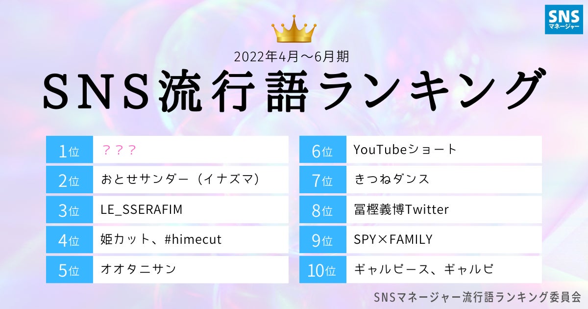 SNSで最近はやった言葉は? 2022年4〜6月にSNS上で流行した言葉のランキングをSNSマネージャー流行語ランキング委員会が選定しました。