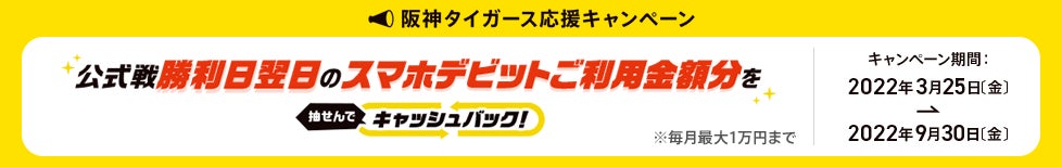 | キャンペーン名 | 阪神タイガースを応援しよう!スマホデビットキャッシュバックキャンペーン |