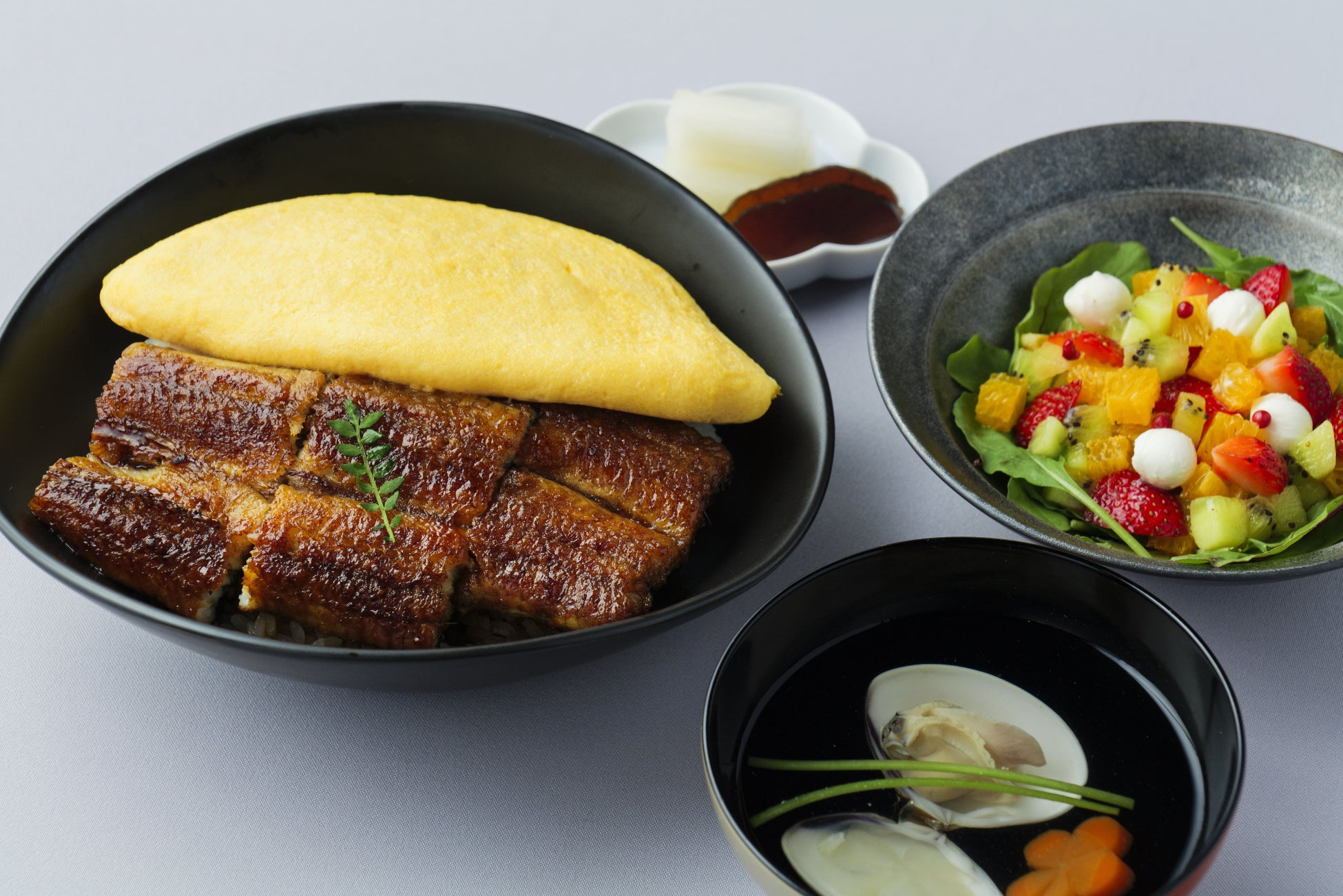 国産うなぎと一緒にふわふわに焼き上げたオムレツをお楽しみいただける豪華な鰻丼です。新春らしい華やかな御膳に仕上げました。スパークリングワイン1杯付き。