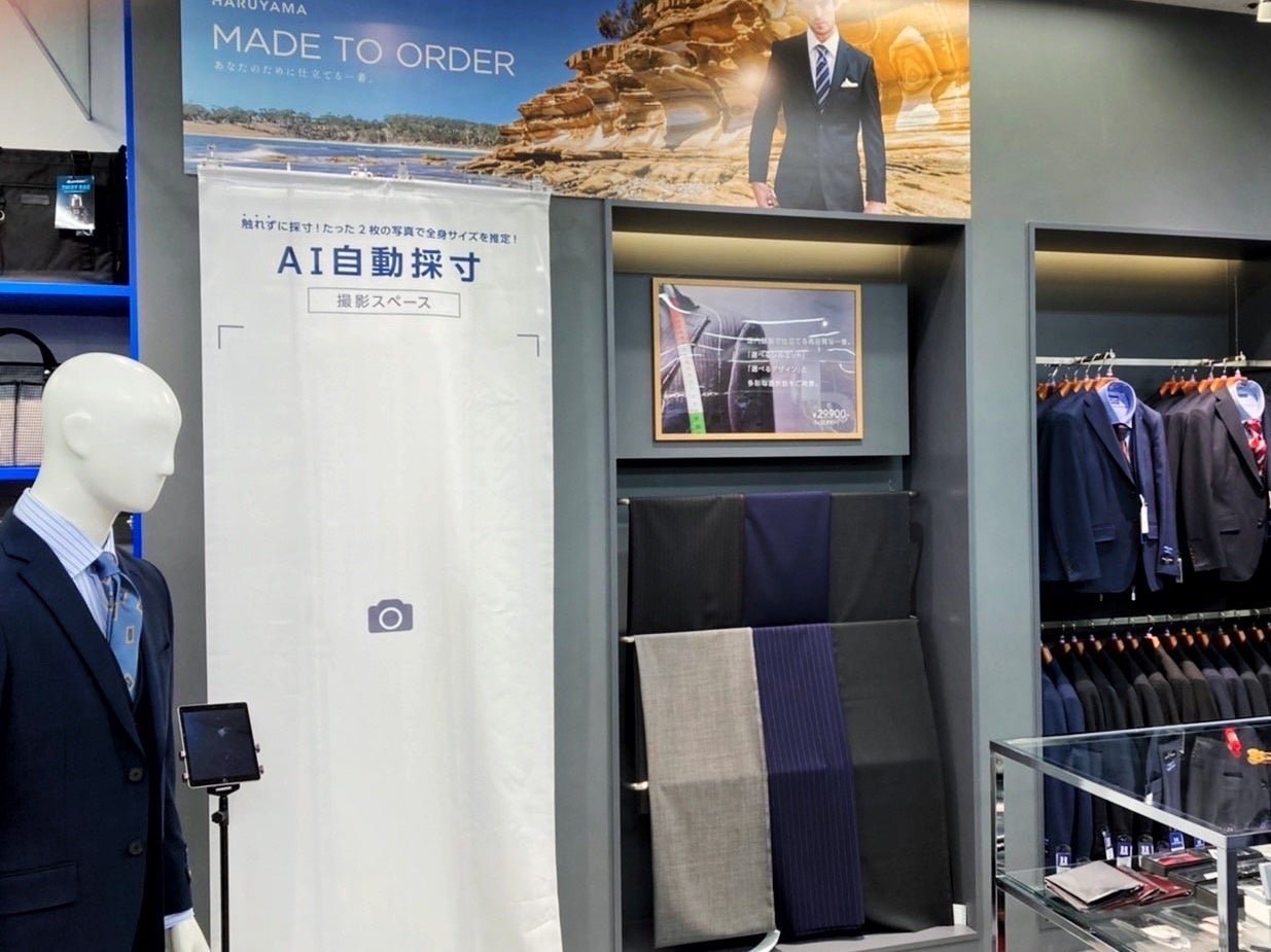 同店舗は従来のはるやま店舗に比べると面積が約半分以下の70坪となっており、在庫数を抑えた新たなモデル店としてオープンします。在庫を抑えながら従来と同様のサービスを提供するため、iPadを活用しオンラインショップとの在庫共用化による商品提案を接客に