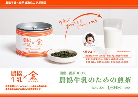 また、JAPAN RAIL CAFE TOKYOの日本茶メニューを監修するシングルオリジン煎茶専門店「煎茶堂東京」とコラボレーションした限定メニュー「農協牛乳で作る濃厚ミルク仕込みのお茶ラテ」がお楽しみいただけるほか、お茶ラテに使用する「農協牛乳のための煎茶」も数量限定で購入いただけます。