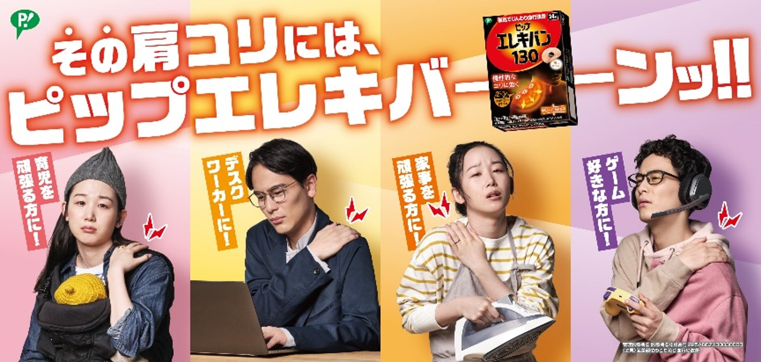 日常生活に潜む肩コリシーンをリアルに再現「ピップエレキバン®」新WEBCM“肩コリにピップエレキバーーンッ!!”シリーズ全12種を2023年1月10日(火)より公開!
