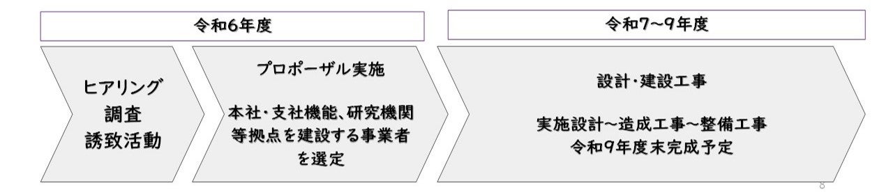 誘致した企業が建設するビル内の一部を本市が賃借し、産地学官連携拠点(コワーキングスペース、シェアオフィス、研修室等)を設置する。運営者は別途公募して決定する。