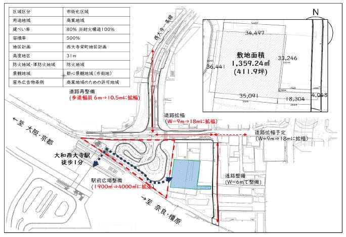 大阪・京都・奈良県中南部へのハブ拠点、近鉄有数の乗降客数がある近鉄大和西大寺駅隣にまとまった市有地。