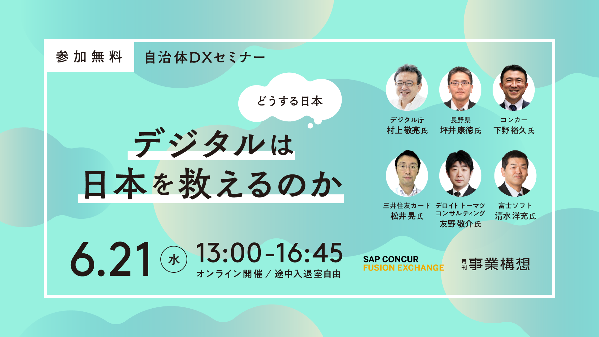 【デジタル庁統括官登壇】自治体DXセミナー「どうする日本 ~デジタルは日本を救えるのか~」を6月21日(水)オンライン開催