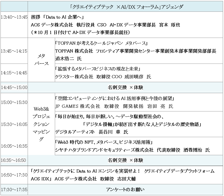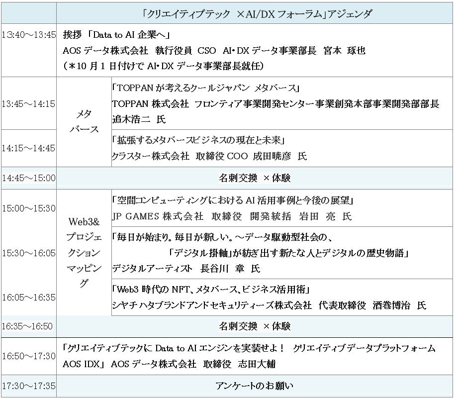 AOSデータ社、「クリエイティブテック×AI/DXフォーラム」開催〜メタバース、XR、ブロックチェーン、画像生成AI、クリエイターエコノミーのDX事例〜