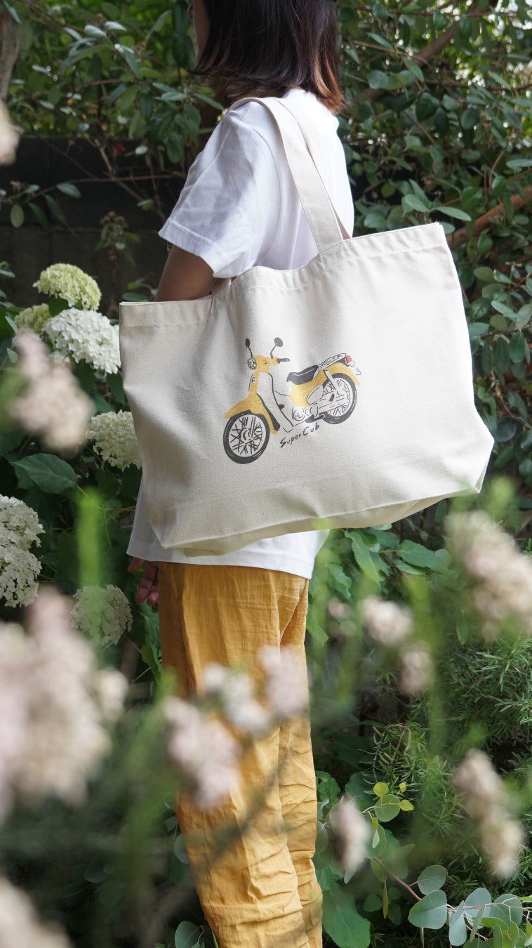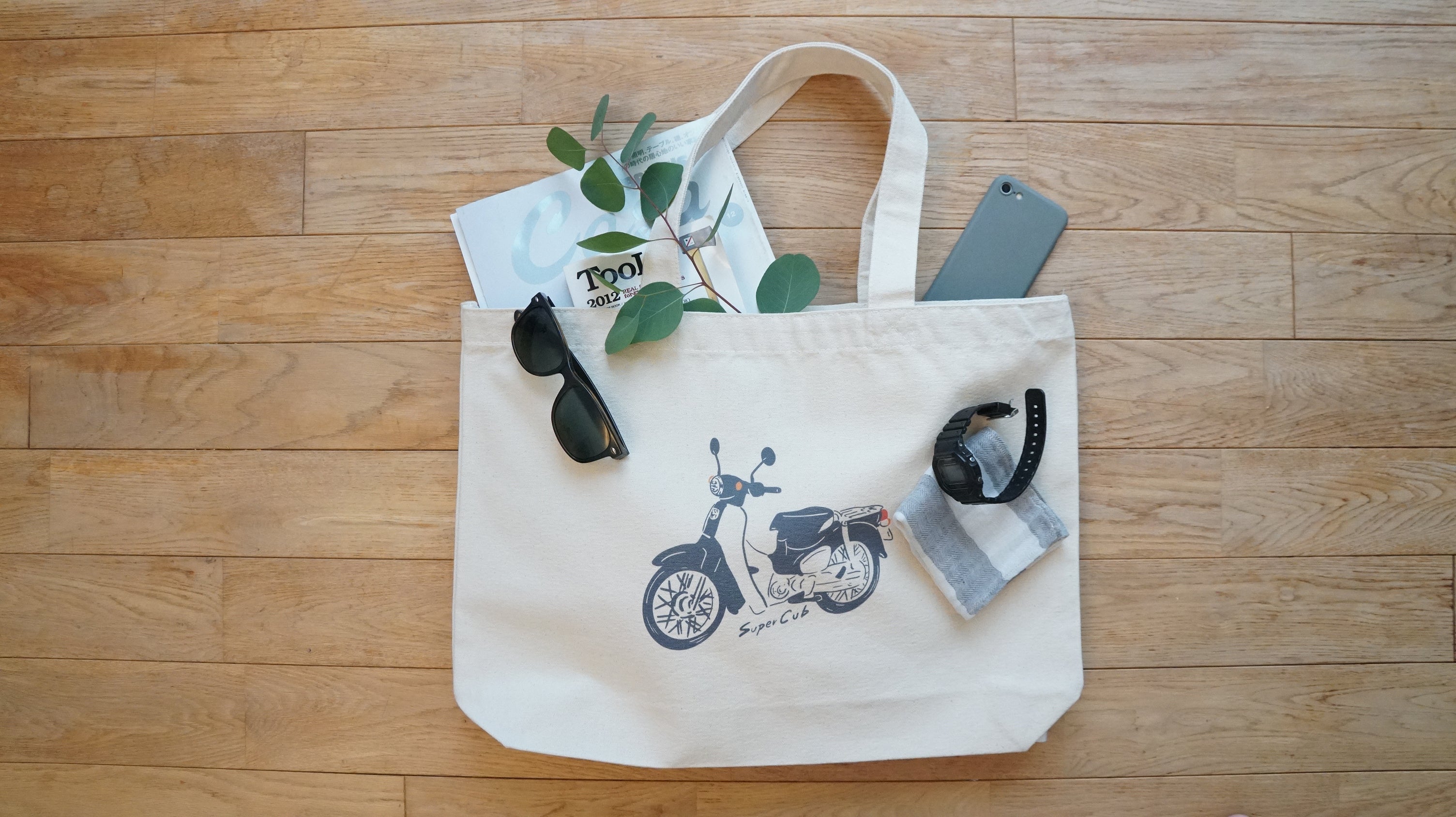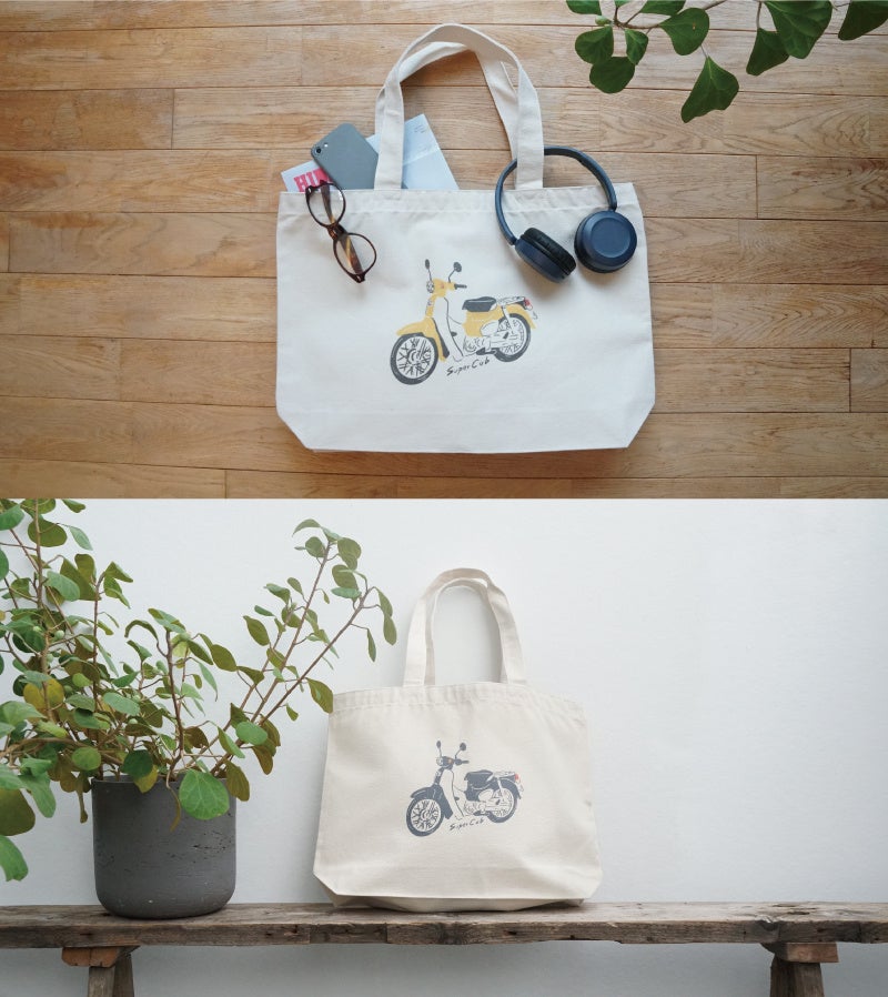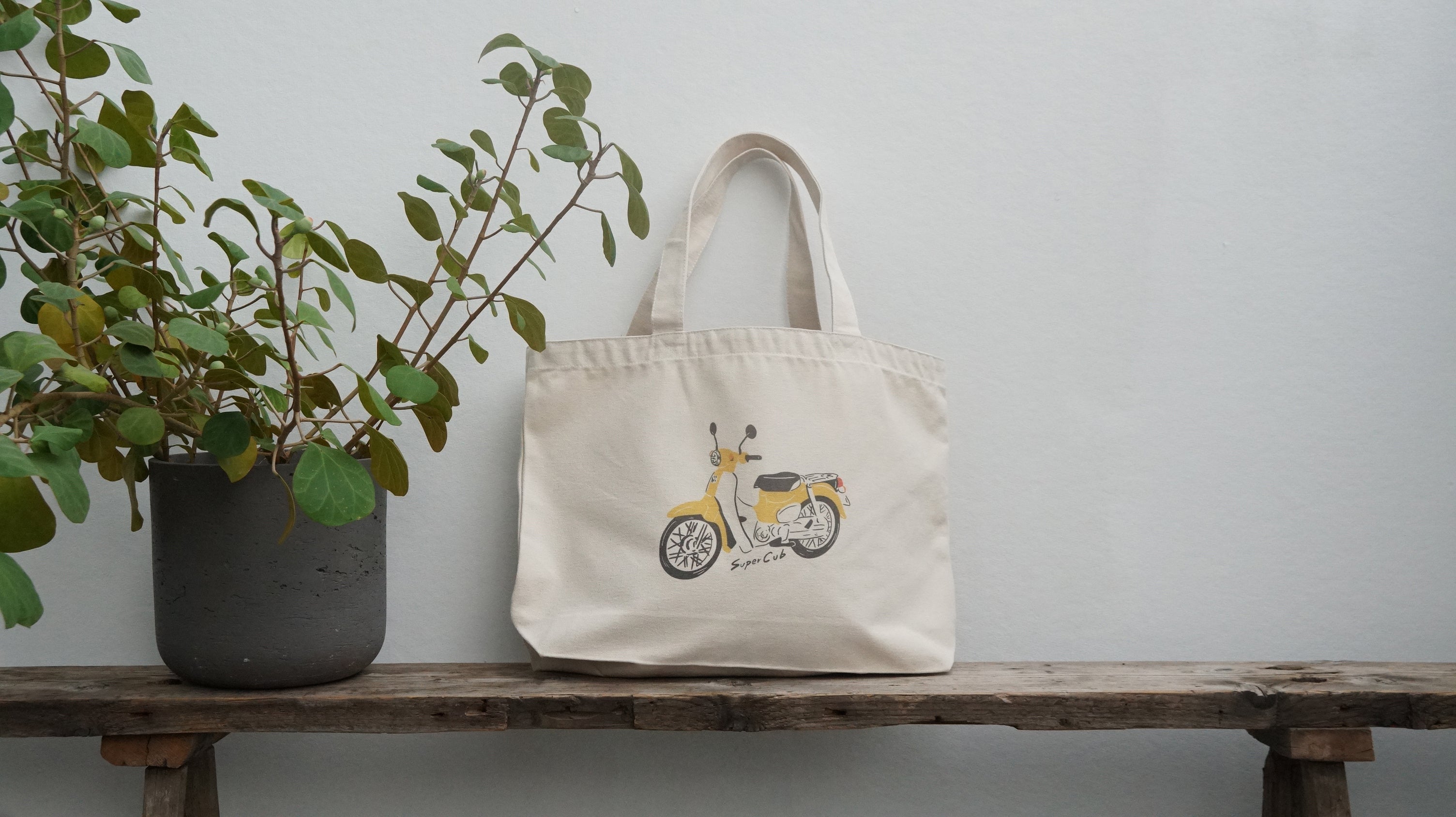 hondaの人気車種「スーパーカブ」のデザインのトートバッグを発売。