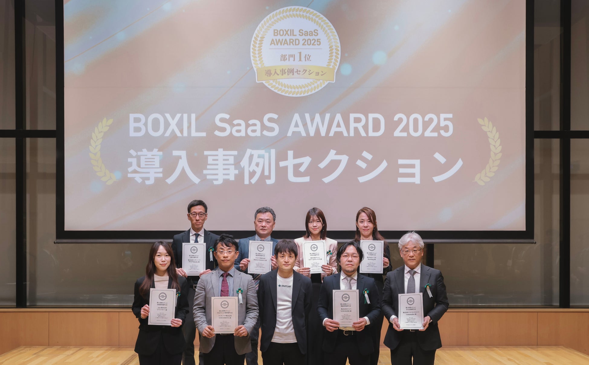 「BOXIL SaaS AWARD 2025」は、エントリー式で審査する「導入事例セクション」と、「BOXIL」上の口コミデータを元に定量評価する「BOXILセクション」を設けています。部門1位は、各セクションの基準をもとに選考が行われ、部門ごとに最も評価の高いサービスに付与されるものです。なお、その中から選出された総合1位は「Best SaaS in Japan」として表彰されます。