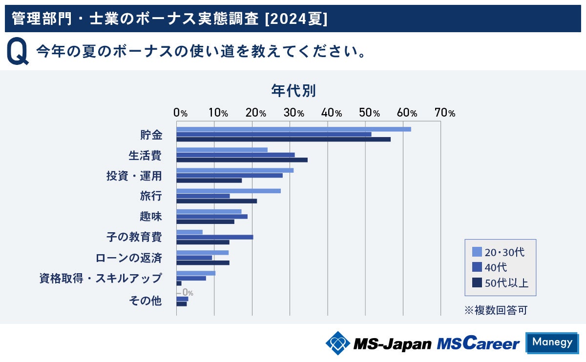 管理部門・士業のボーナスの使い道は全年代で「貯金」が半数超え