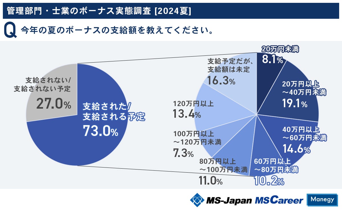①【2024年夏のボーナスは7割以上が支給!支給額は「20万円以上~40万円未満」が最多】