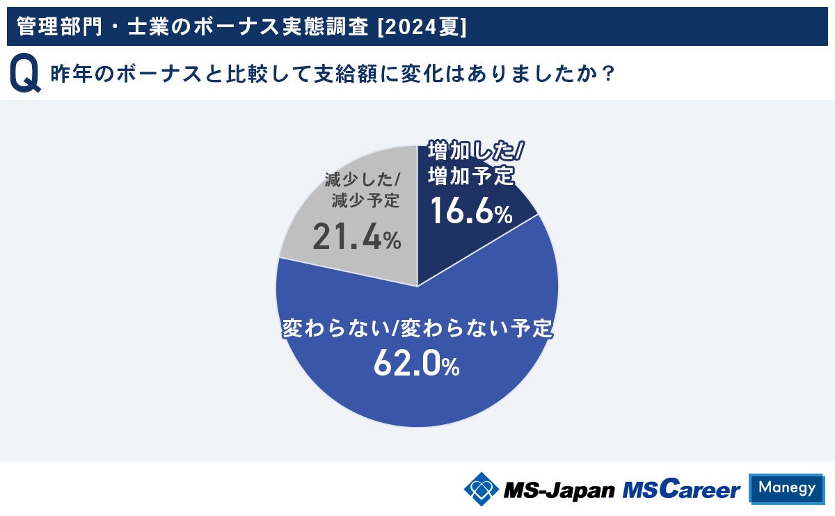 ②【2024年夏ボーナス支給額は6割以上が「昨年と変わらない」と回答】