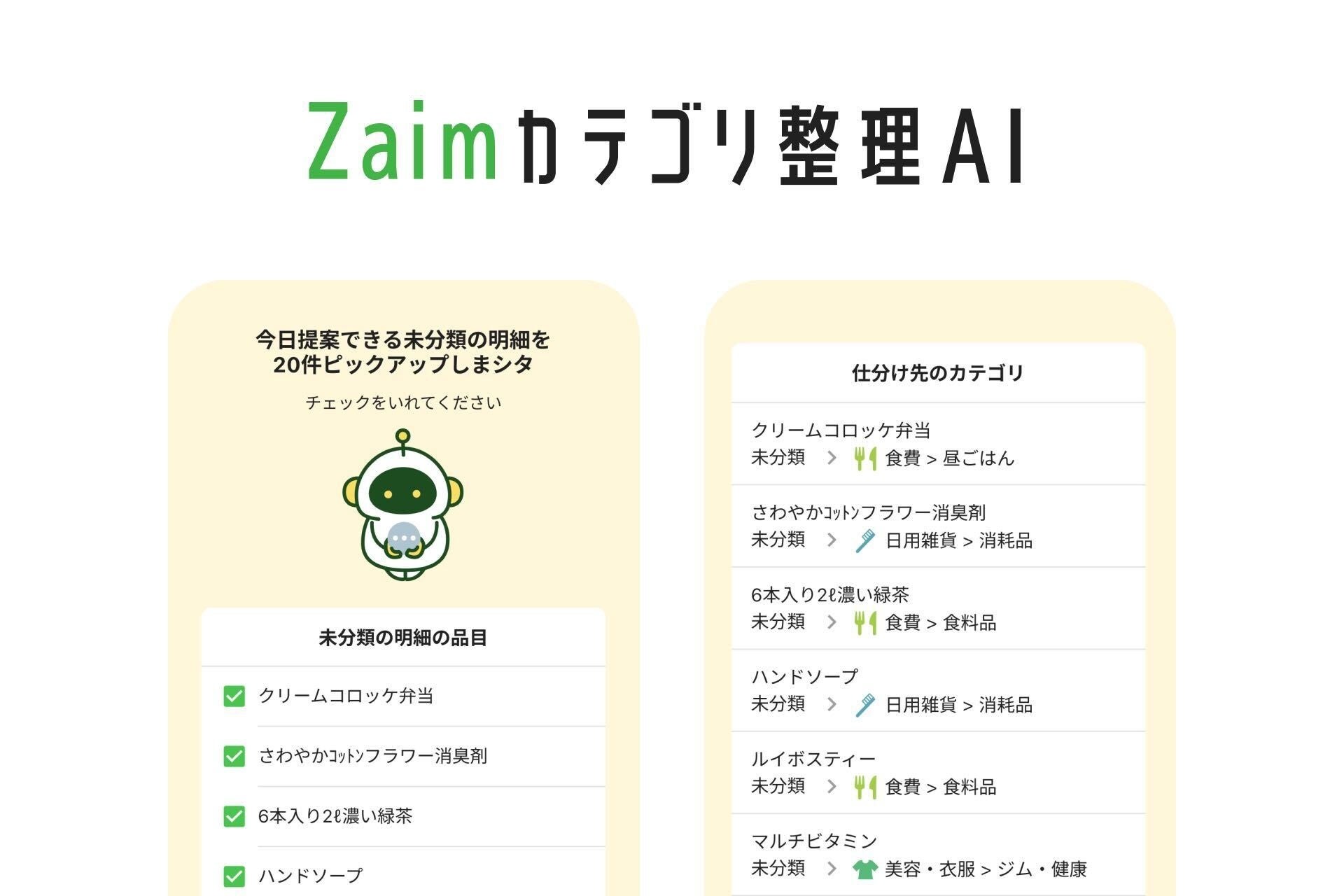 家計簿アプリZaim、適切な支出項目をAIが提案する新機能「Zaim カテゴリ整理 AI」を公開