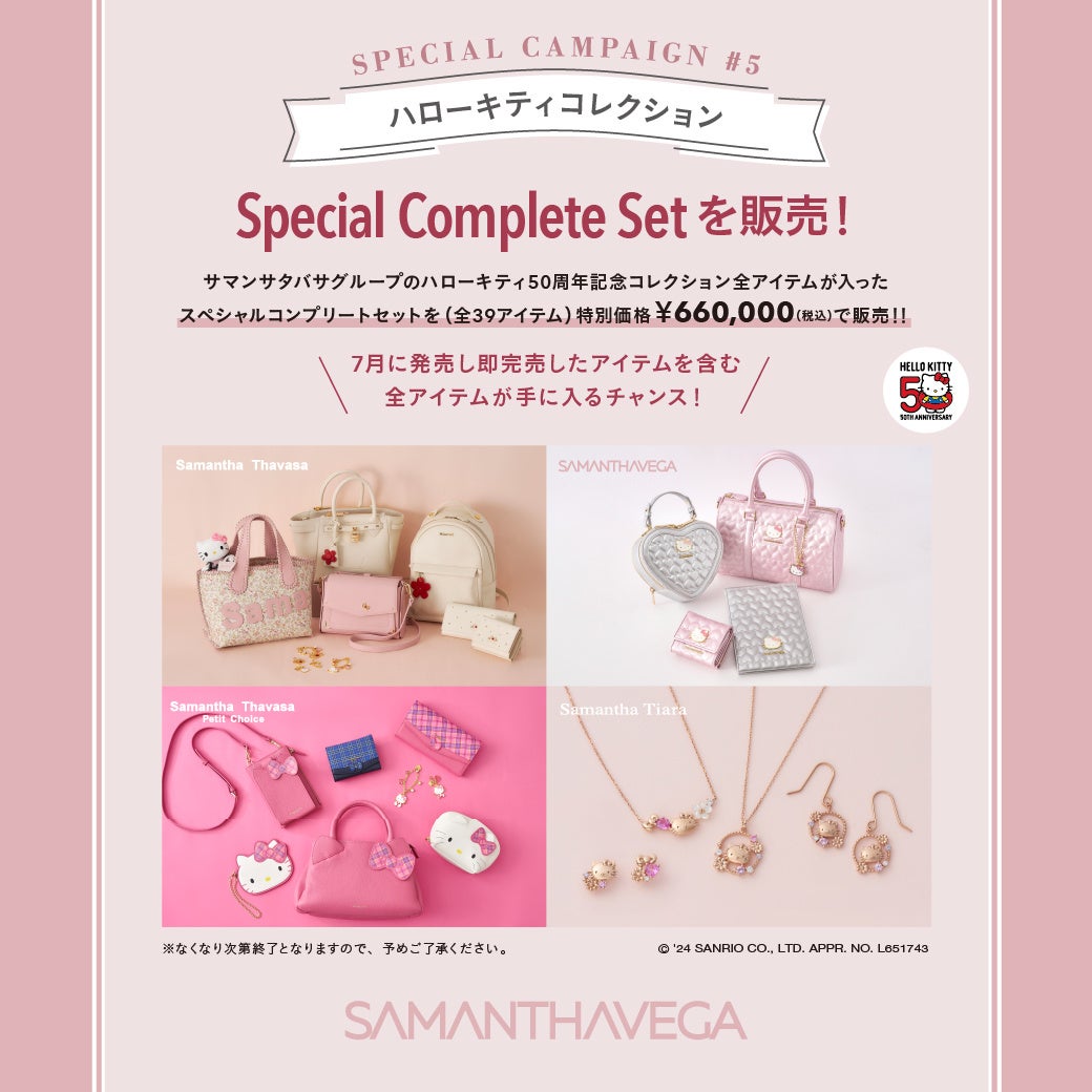 サマンサタバサグループのハローキティ50周年記念コレクションアイテムがすべて入った