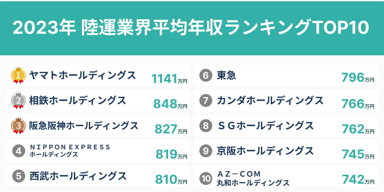 2023年 陸運業界平均年収ランキングTOP10を発表!/SalesNow DBレポート