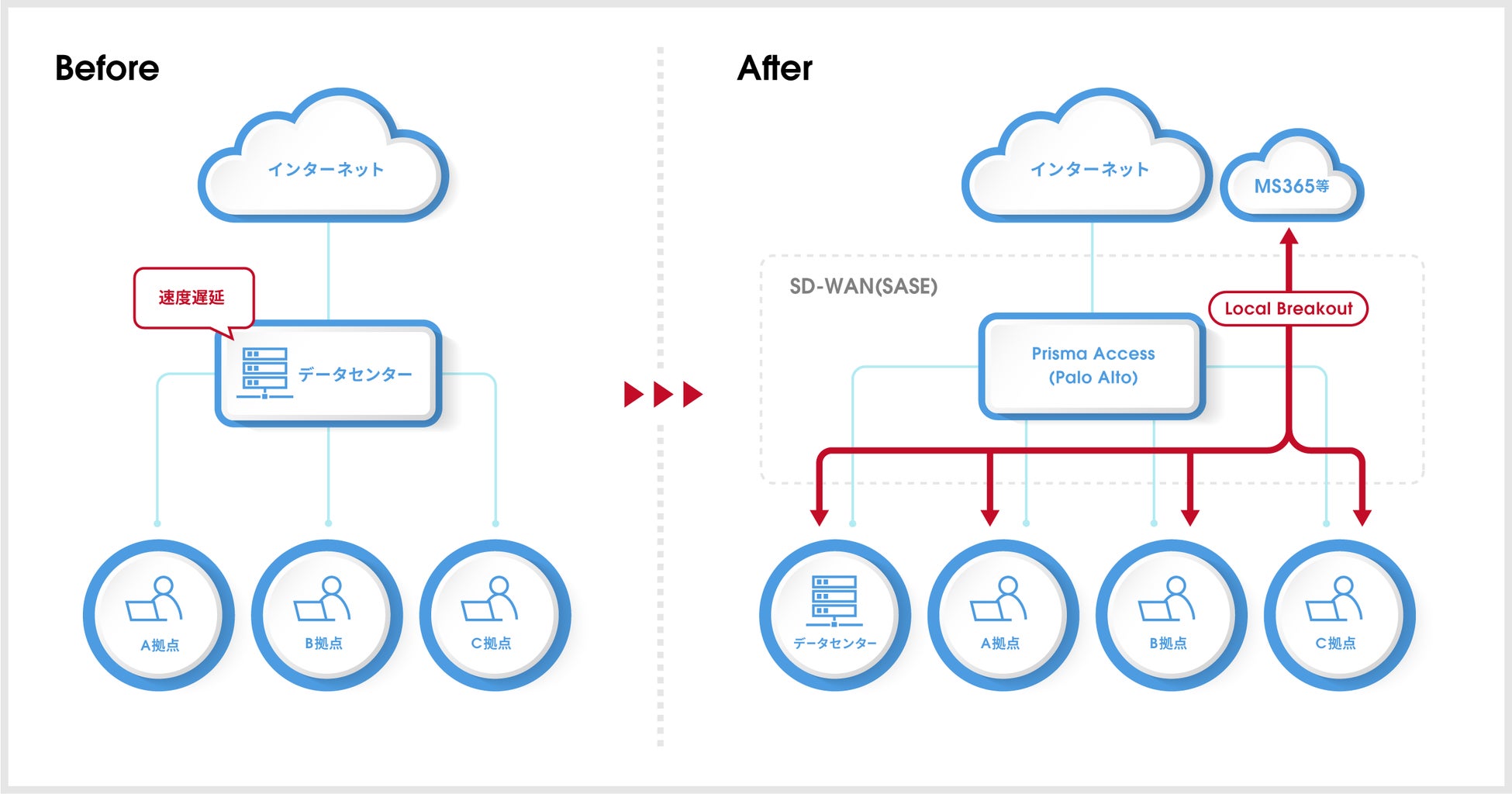 インターネット通信のセキュリティ強化を目的として、SASE(Prisma Access)を導入 |