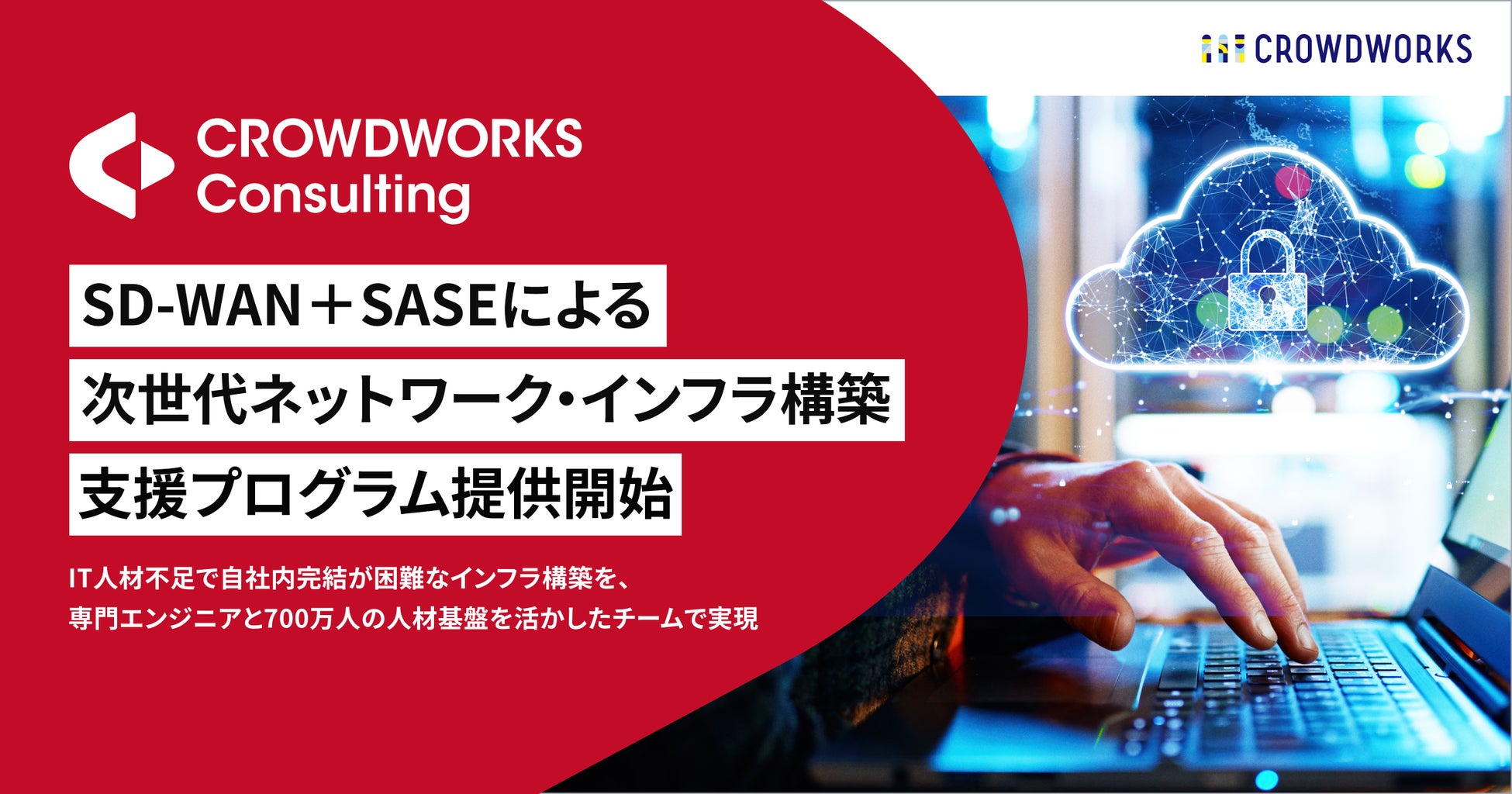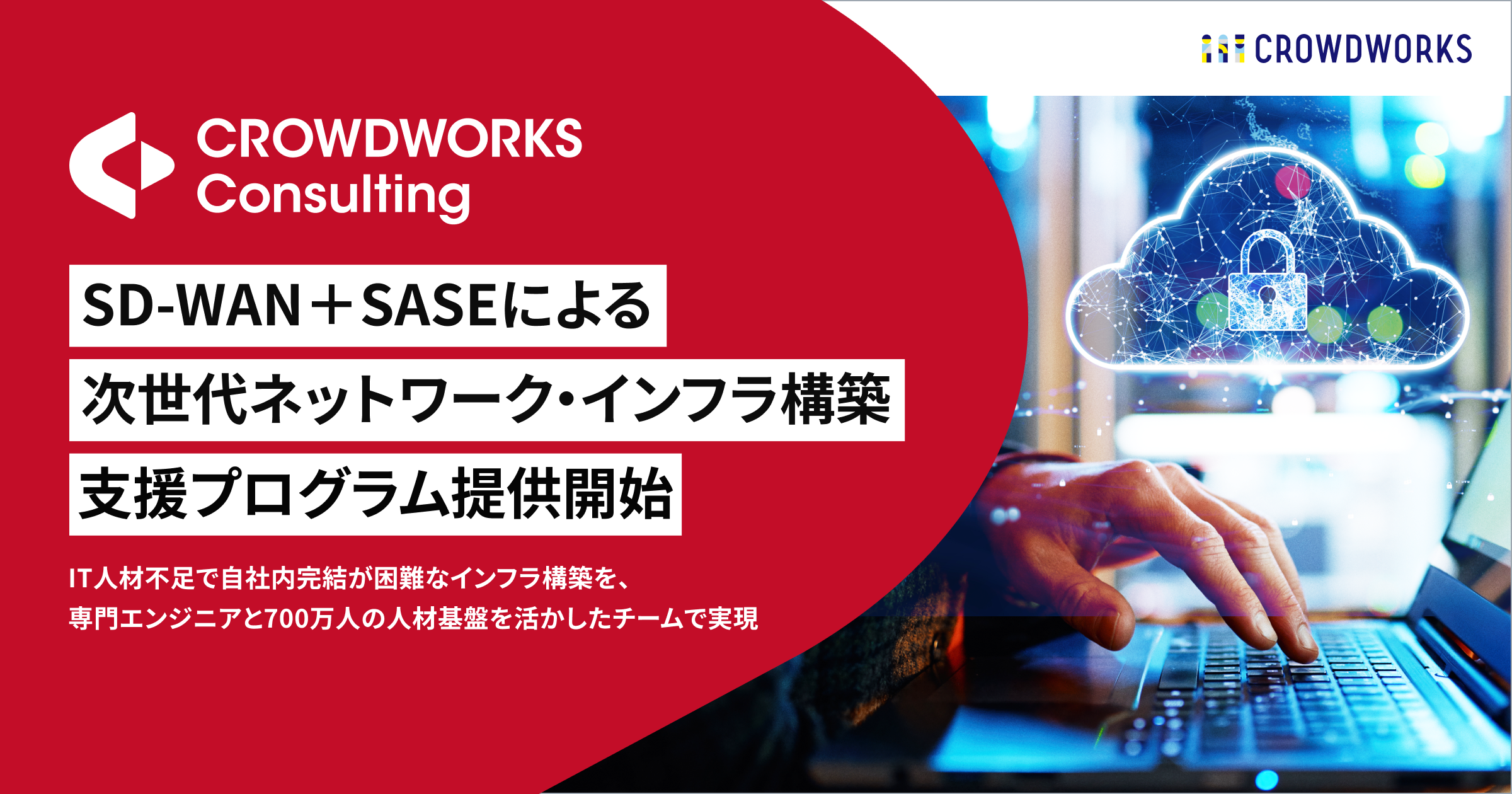 フリーランス業界最大級のプラットフォーム(登録ワーカー含む登録ユーザー数700万人・登録企業100万社)* を基盤に、IT人材&DXコンサルティングサービスを提供する株式会社クラウドワークス(本社:東京都港区 代表取締役社長 兼 CEO:吉田 浩一郎 以下「当社」)のグループ会社である株式会社クラウドワークス コンサルティング(本社:東京都港区 代表取締役:大類 光一 以下「CWC社」)は、企業のDX推進やAI活用を加速する「攻めの基盤」であるSD-WAN※1 と、AIを悪用したサイバー攻撃から防御し、さらに運用負荷を軽減する「守りの基盤」であるSASE※2 を活用した「次世代ネットワーク・インフラ構築支援プログラム」(以下、「本プログラム」)の提供を開始いたします。