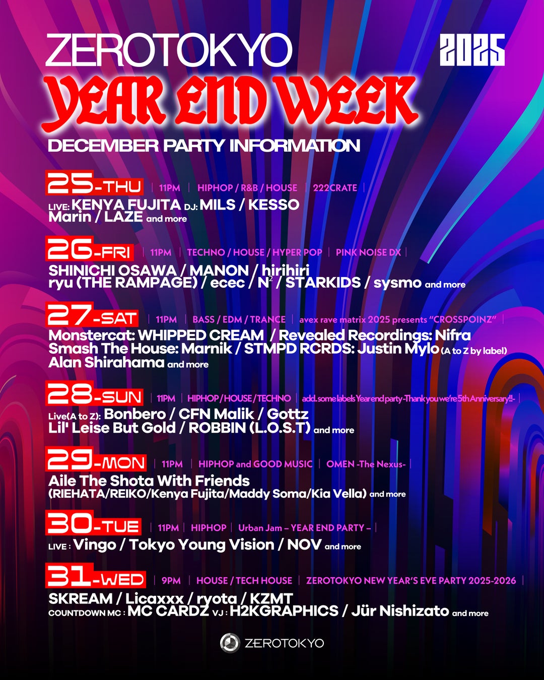 ZEROTOKYO 2025 YEAR END WEEK EVENT情報!