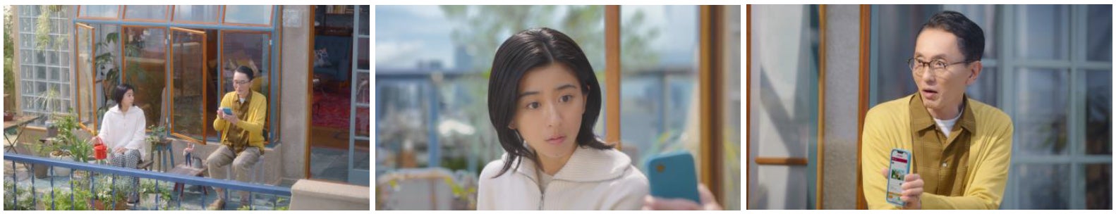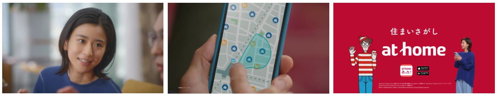 ちょっとおせっかいに自らもアットホームで部屋探しのお手伝いをアピールする父・松重豊さんと、理想の部屋が見つかり、「あった!」と笑顔になる娘・黒島結菜さんの様子を描きました。「アットホームであった♪」と口ずさみながら掛け合いをしたり、2人がアットホームのアプリやサイトを使っている様子を通じて、アットホームのサービスや利便性を伝えます。部屋探しに奔走する松重さん・黒島さん親子のほっこりとする掛け合いにご注目ください。