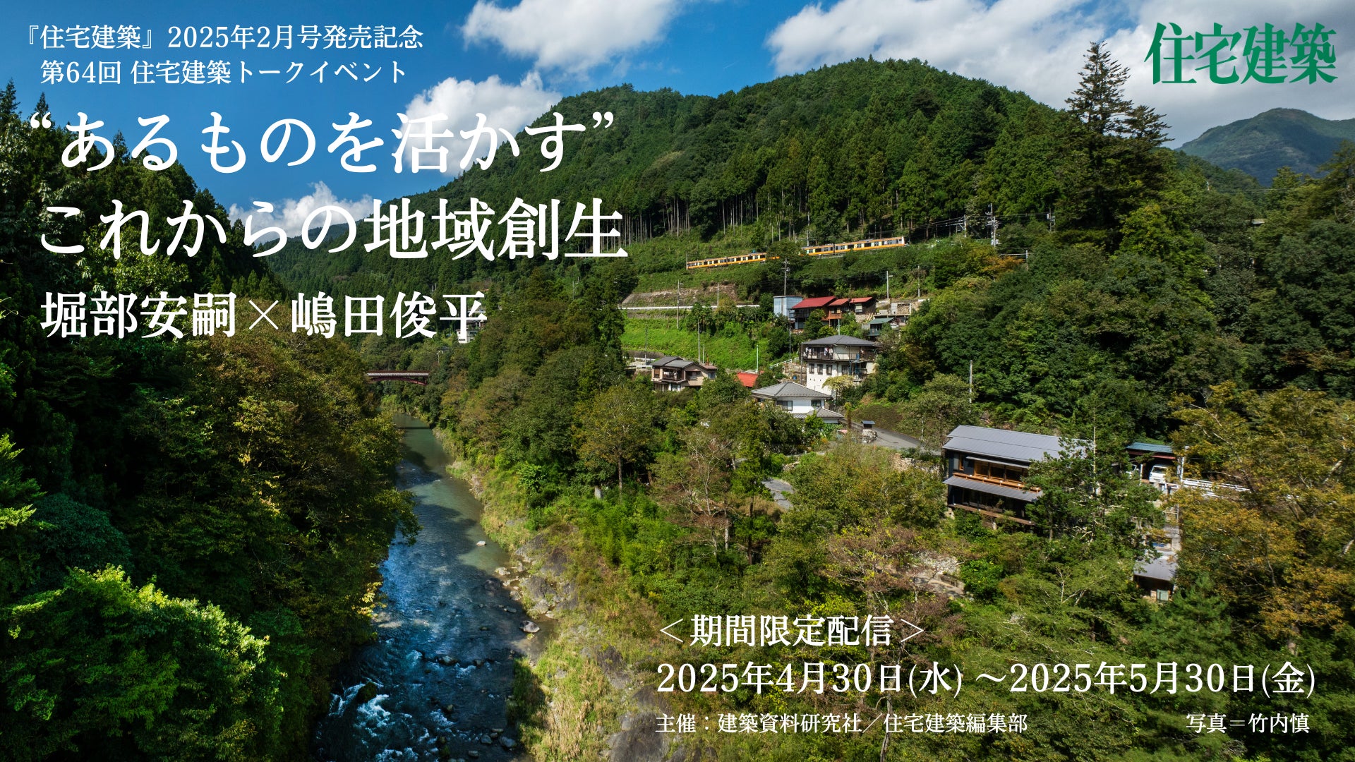 第64回住宅建築トークイベント「“あるものを活かす” これからの地域創生」 堀部安嗣×嶋田俊平 4月30日~期間限定配信(予定)