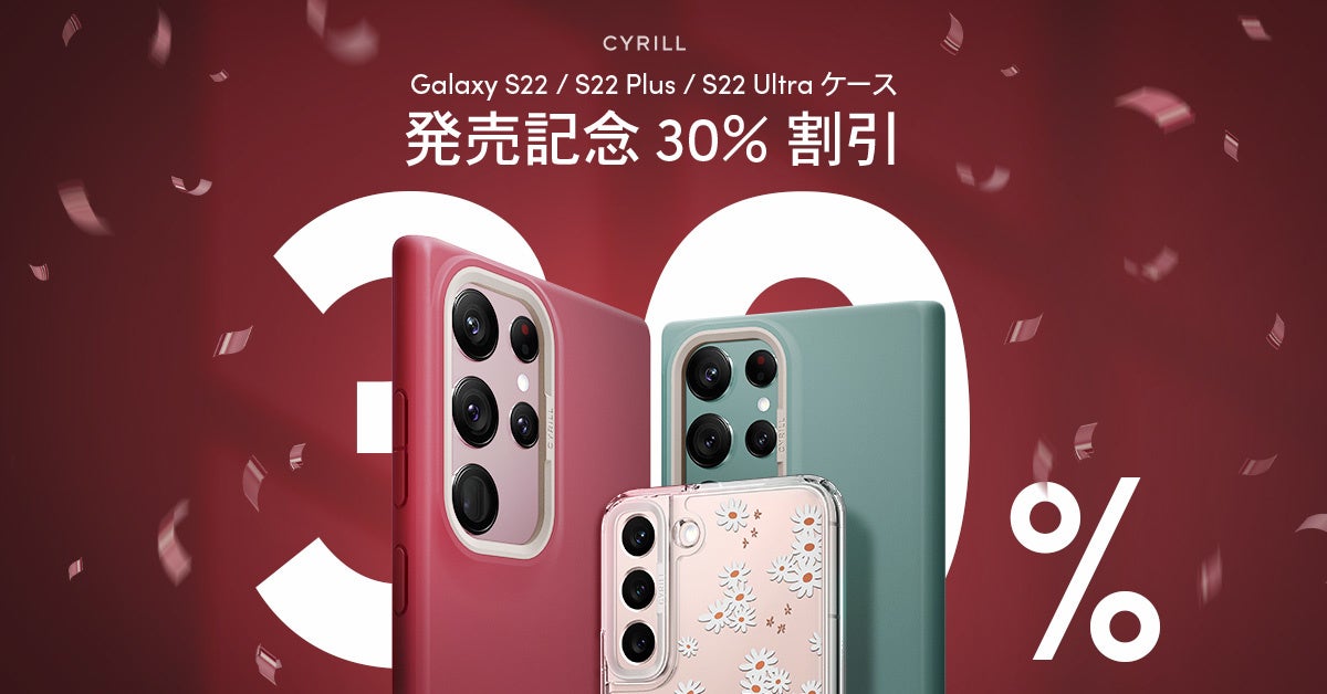 Spigenの姉妹ブランドCyrill(シリル)がgalaxy S22シリーズ製品の発売を記念してカラーブリックとフレッシュな花柄ケース商品に対して30%割引を期間限定で行います。