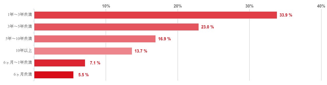 「1年〜3年未満」が33.9%で最も多く、「3年〜5年未満」が23.0%でこれに続いた。