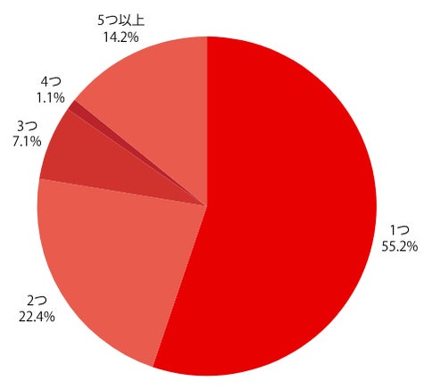 「1つ」が55.2%で半数を超えたが、「2つ」との回答も22.4%集まった。