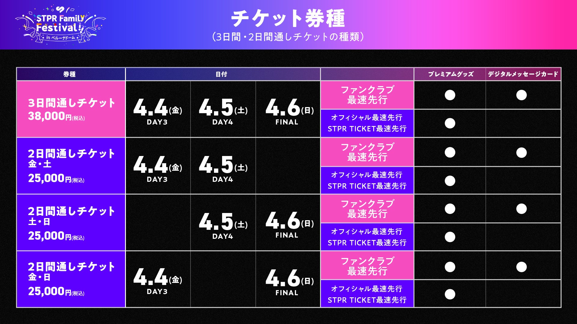 5DAYS・20万人を動員するSTPR史上最大級のドームフェス!4/4(金)~4/6(日)開催『STPR Family Festival!! in ベルーナドーム』のチケット最速先行受付がスタート!