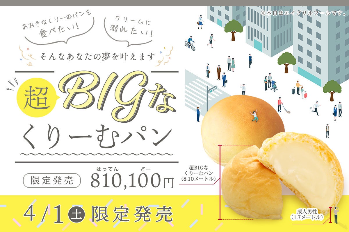 『8.10メートルの超巨大くりーむパン』のエイプリルフール投稿を行い、ネタバラシ後に通常の4倍サイズのくりーむパン「びっくりーむパン」を販売しました。初期在庫分が早期完売するほどの反響がありました。