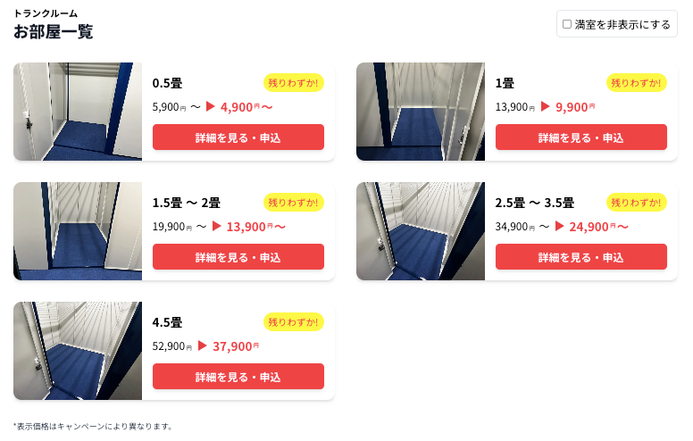 トランクルームってどのくらいの広さで、どの程度の荷物が収まるの?