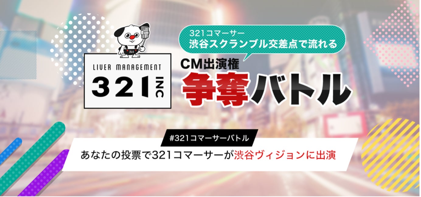 あなたの投票で推しの321コマーサーが渋谷ビジョンに出演!『321コマーサー渋谷スクランブル交差点で流れるCM出演権 争奪バトル』