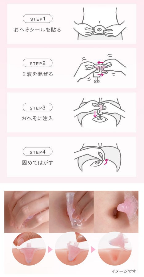ゼリー状のパック剤をおへそに流し込んで、固めてとるへそごま除去パック