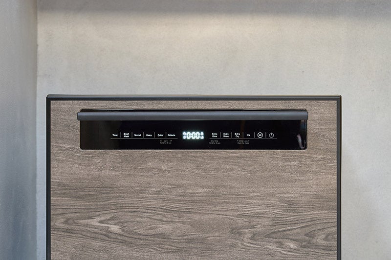 木目柄のスタイリッシュなデザイン性と、機能性を両立させた4~5人用の大容量食洗機。