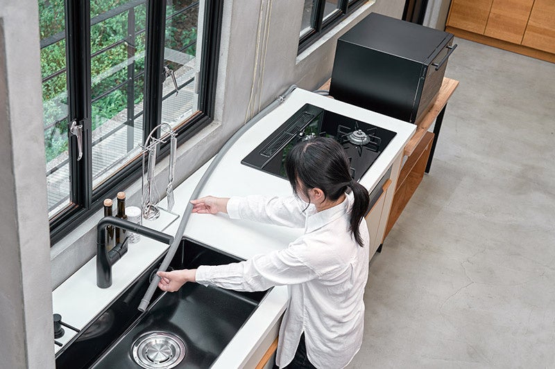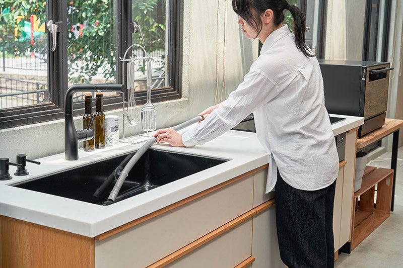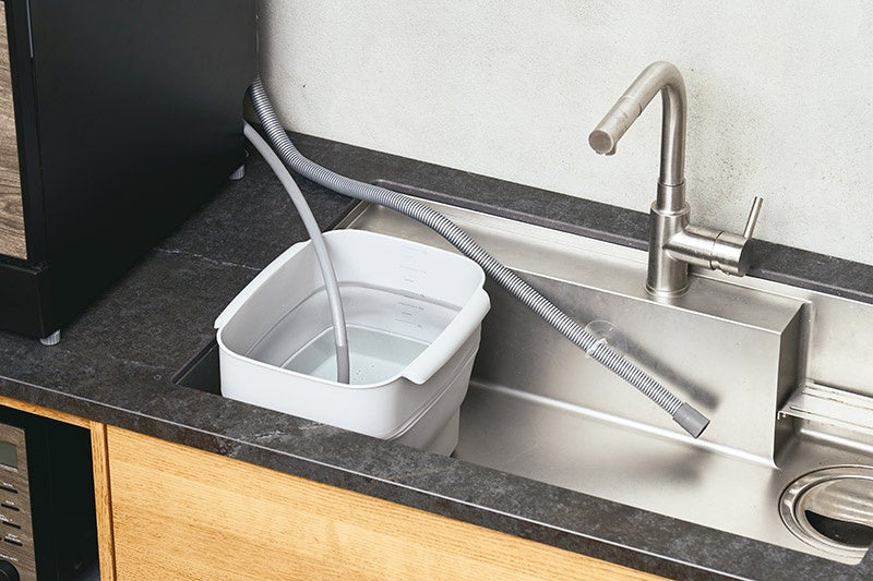 給水方式は分岐水栓と、工事不要の自吸ポンプの2種類を用意し、住環境に合わせてセレクトが可能。見せ置きできるデザインで、キッチンにスペースがなく諦めていた方にもおすすめの1台。
