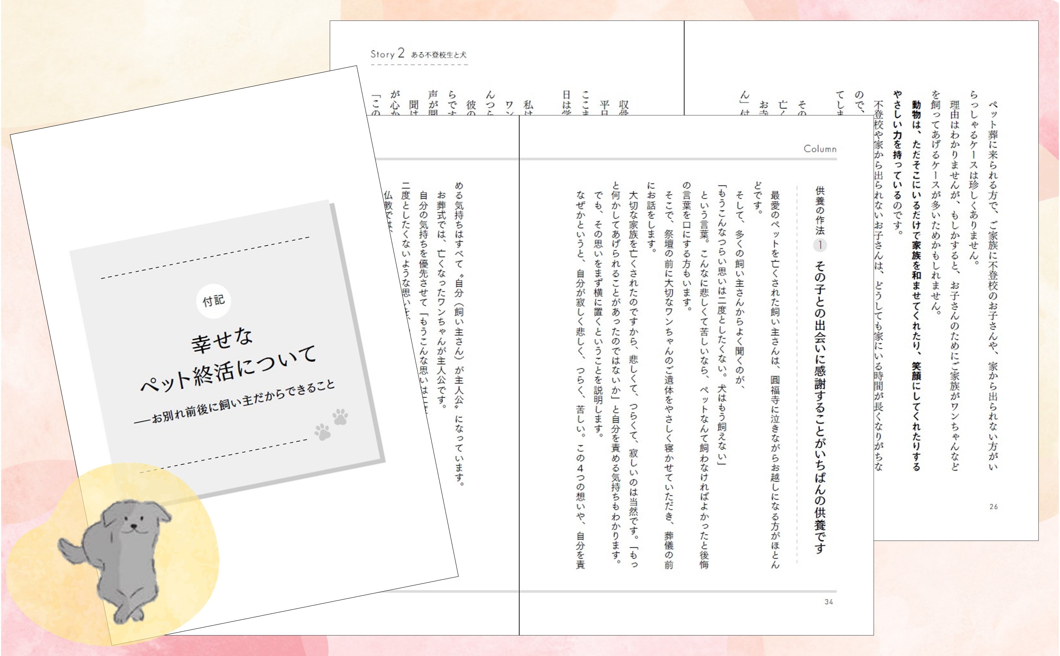 「ペットロスから立ち直れた」「気持ちがラクになった」「人生が変わった」と感謝の声続々、ペット供養を通じて飼い主の生き方も変わる感動実話です。