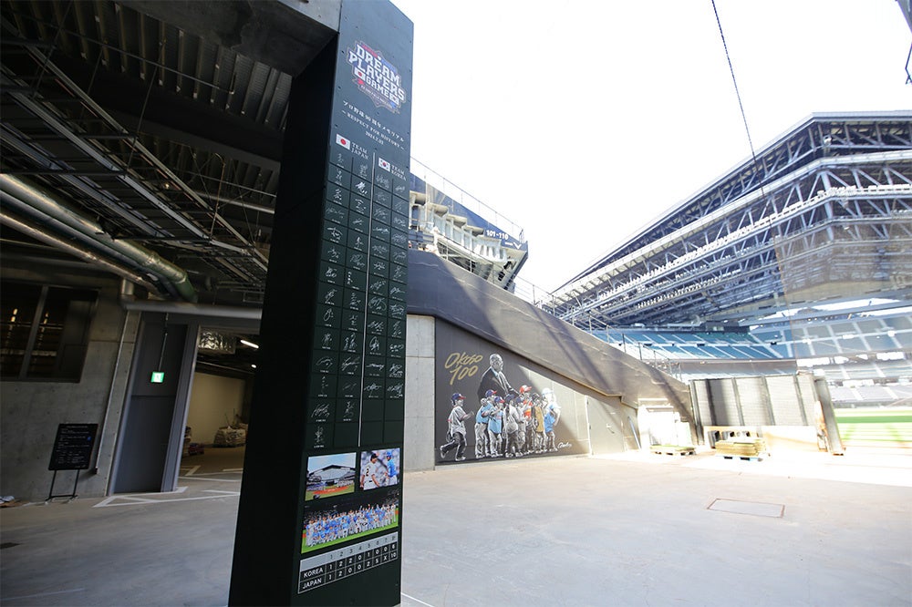 当日、韓国チームが使用した3塁側のビジターチームエリアを中心に日本と韓国の参加選手、監督、コーチのサインが飾られたモニュメントなど、イベント当時の熱気と感動を振り返りながら、場内を見学していただく内容となっています。