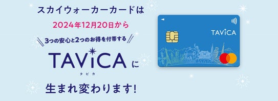 ※「TAViCA」のお申込みは12月20日(金)以降となります。現在「Skywalker Card」をお持ちの方は、12月20日(金)以降、「TAViCA」の優待サービスをご利用いただくことができ、お手持ちの「Skywalker Card」の有効期限に併せ、順次「TAViCA」の新カードへ切り替えとなります。