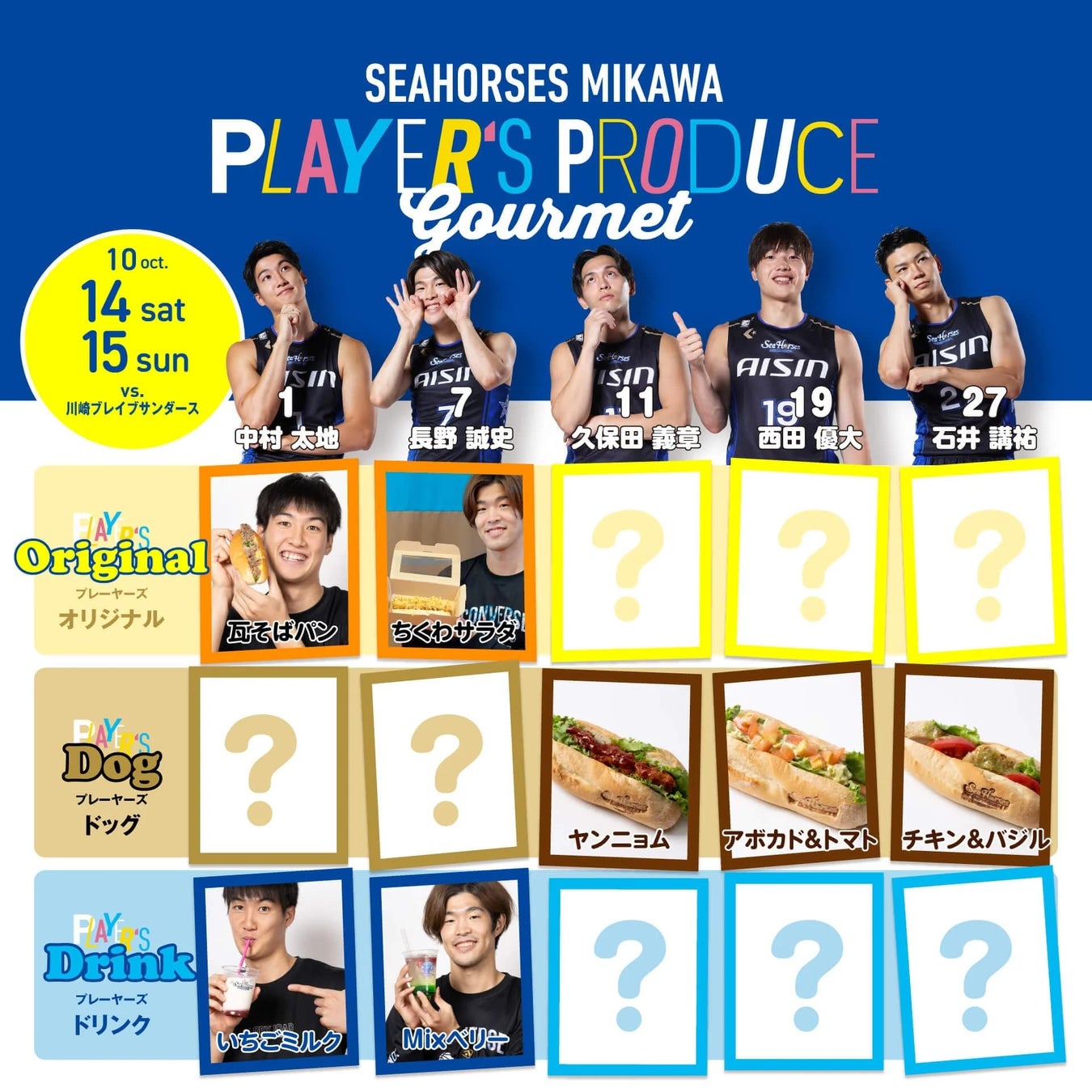 今シーズンは、#1中村太地選手、#7長野誠史選手、#11久保田義章選手、#19西田優大選手、#27石井講祐選手の5名がプロデュース!