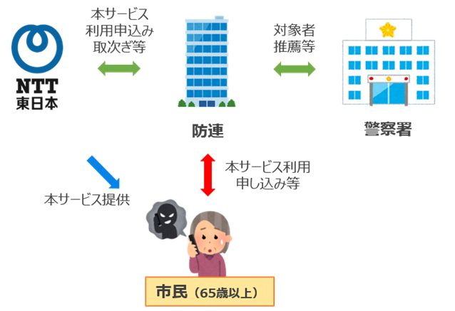 このような背景のもと、東京都内(品川区)において今年の1月に発生した「AIを活用した特殊詐欺対策サービス」の利用がきっかけとなる被疑者逮捕の実例に船橋警察署、船橋東警察署、船橋市、防連が注目し、特殊詐欺被害対策として効果が見込まれること、及び地域の実情に沿った「AIを活用した特殊詐欺対策サービス」活用による被害の未然防止を目的として、このたび、NTT東日本と連携して取り組むことといたしました。