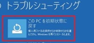 Step1:「Shift」キーを押しながら「再起動」をクリックします。「トラブルシューティング」を選択し、「このPCを初期状態に戻す」をクリックしてください。