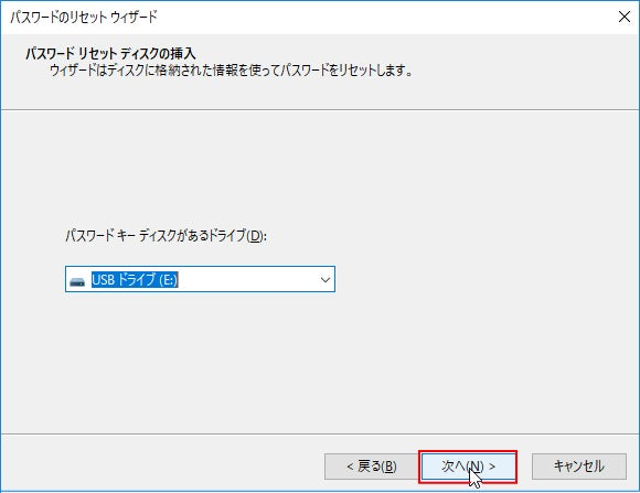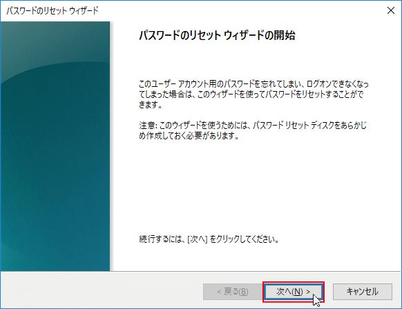 Step3:パスワードのリセットウイザードの開始」が表示されるので「次へ」をクリックします。