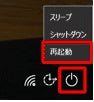 Step1:「電源」アイコンをクリックし、「再起動」を選びます。