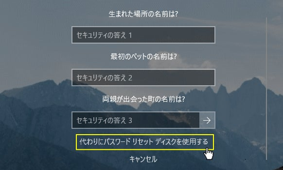 ご注意:この方法を使うと、パスワードリセットディスクを事前に作成する必要があります。もし事前にパスワードリセットディスクを作成していない場合、この方法の使用をおすすめしません。