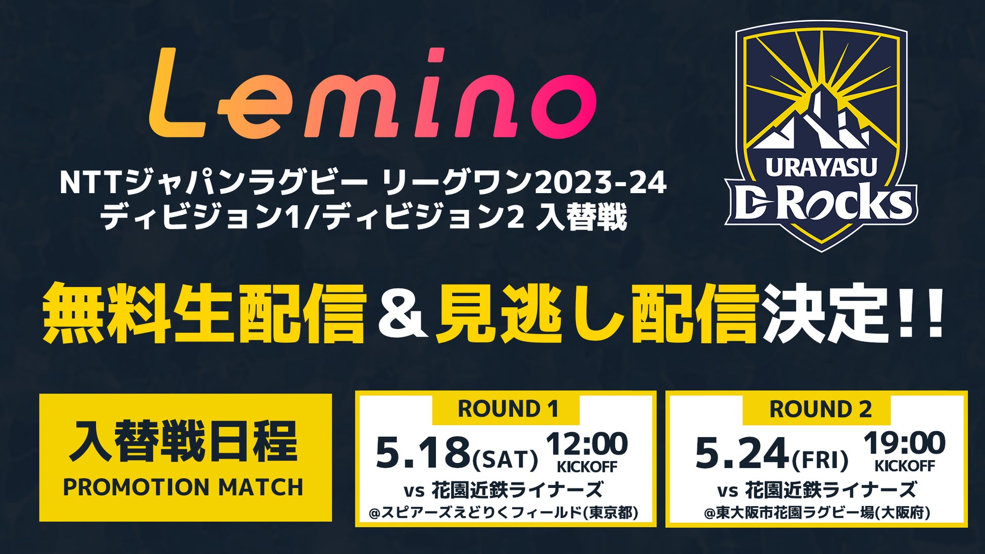 Leminoにて無料ライブ配信!NTTジャパンラグビー リーグワン2023-24 ディビジョン1/ディビジョン2入替戦 浦安D-Rocksの対戦相手が決定!